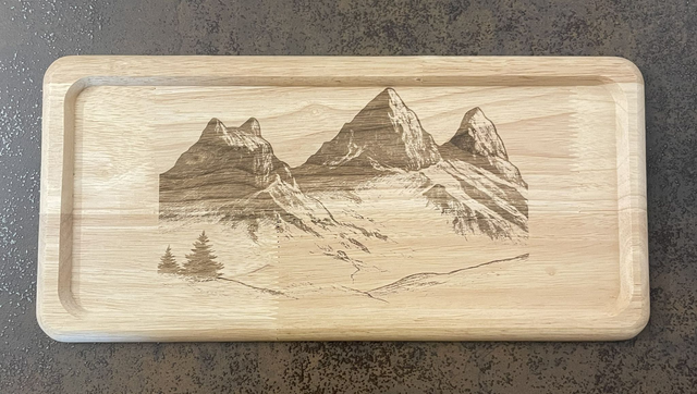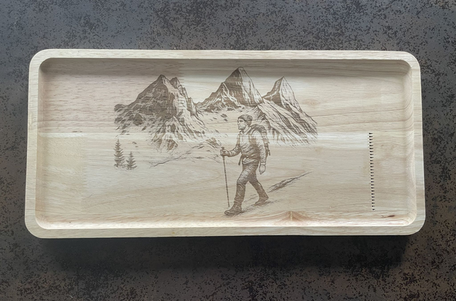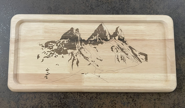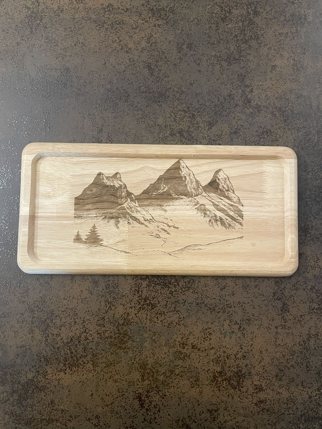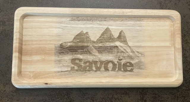 Plateau en bambou de 38 cm x 18cm gravé avec les aiguilles d'Arves.