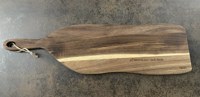 Découvrez la collection premium "L'esprit Alpin", de belles planches de qualité gravées de la forme des aiguilles et d'une citation liée à nos chers montagnes.