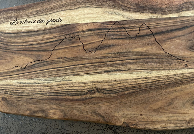 Découvrez la collection premium "L'esprit Alpin", de belles planches de qualité gravées de la forme des aiguilles et d'une citation liée à nos chers montagnes.